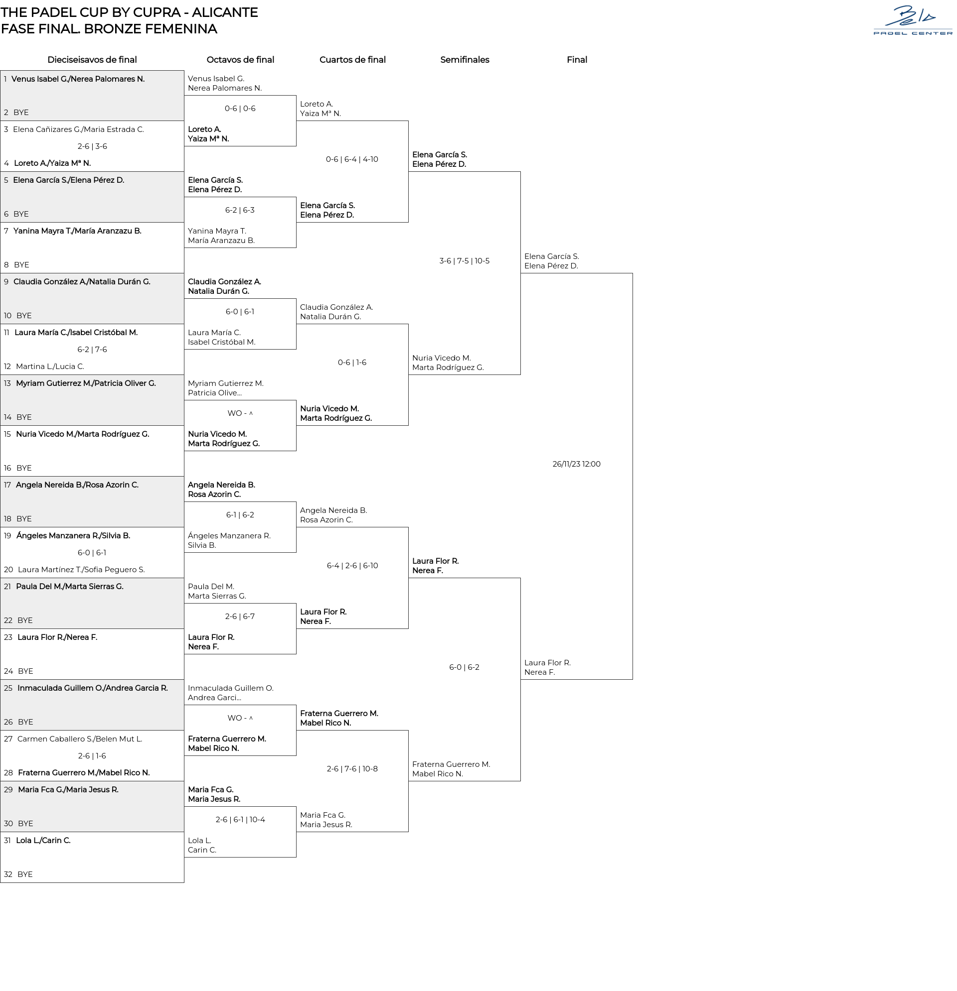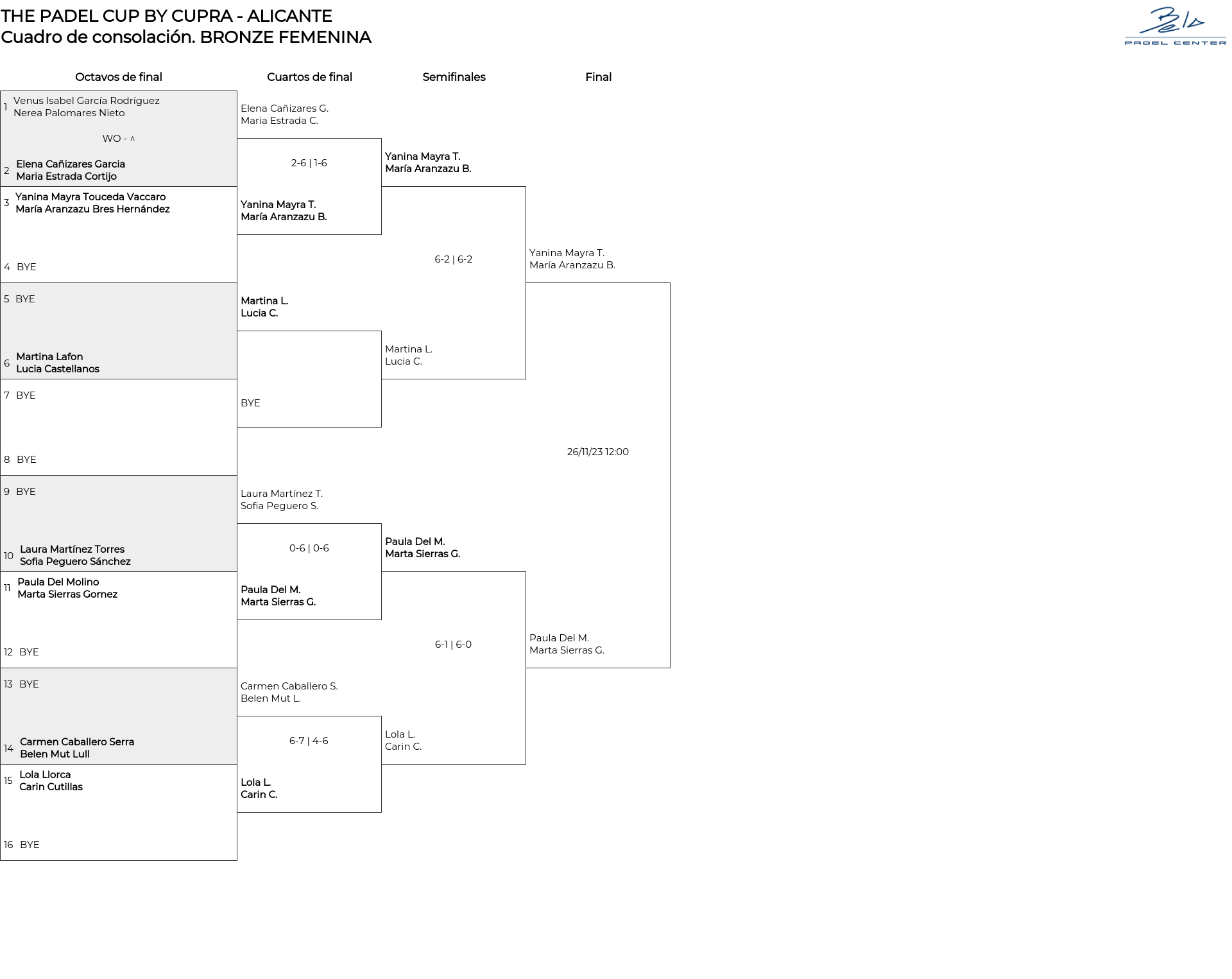 BRONZE FEMENINA . Desde 20/11/2023 18:00 hasta 26/11/2023 14:00