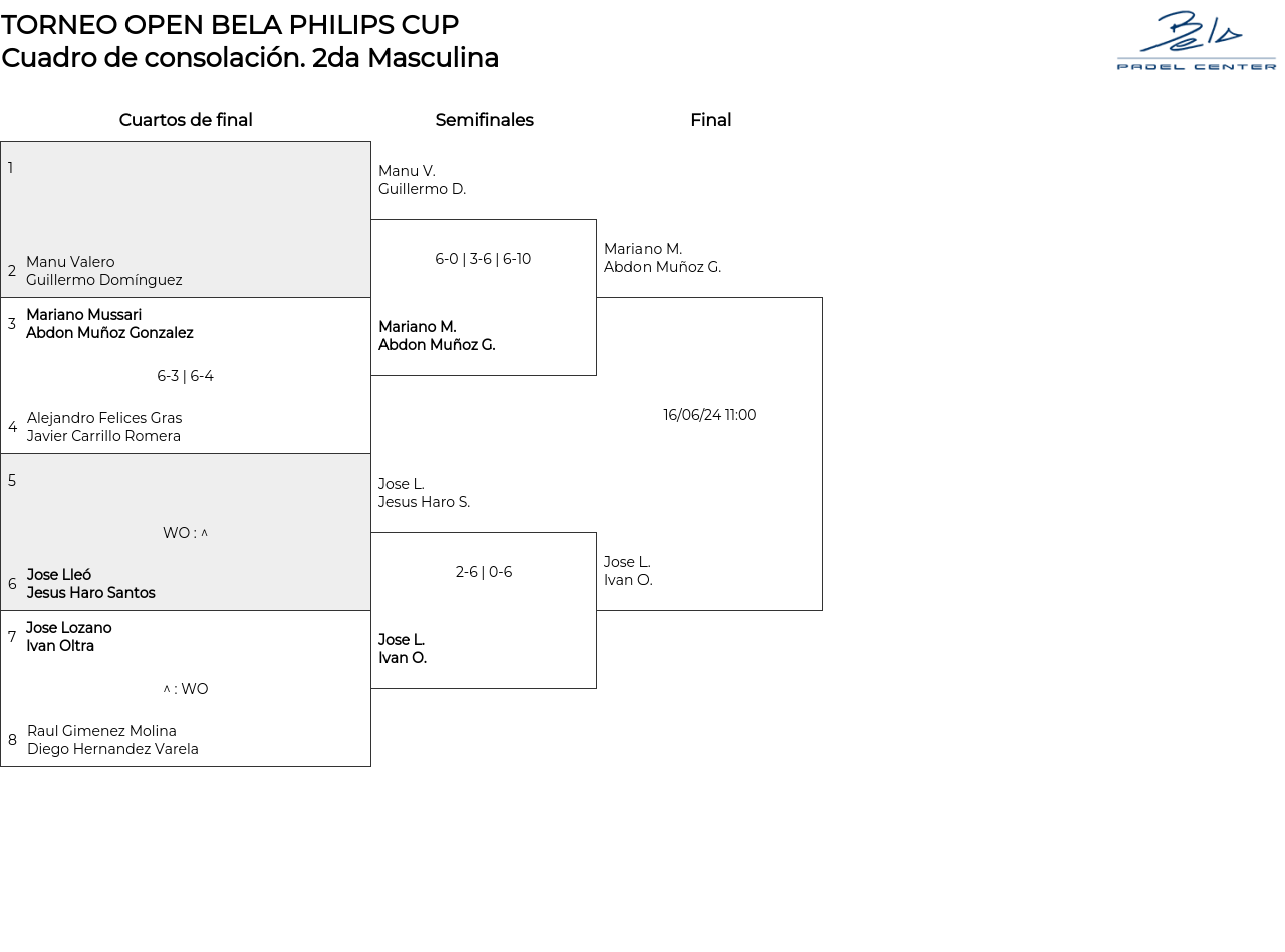 Cuadro de consolación 2da Masculina