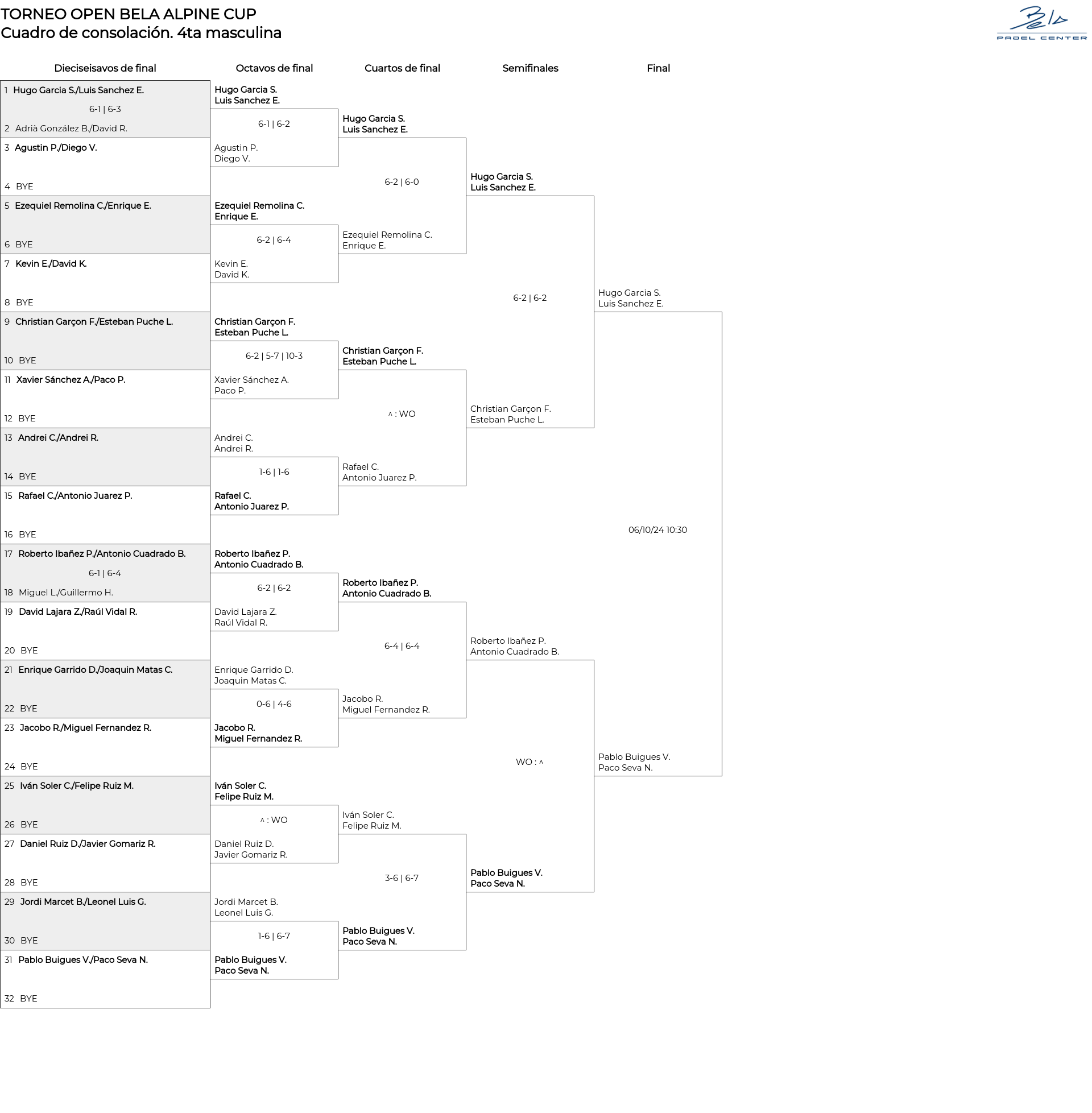 4ta masculina . Desde 30/09/2024 17:00 hasta 06/10/2024 14:00