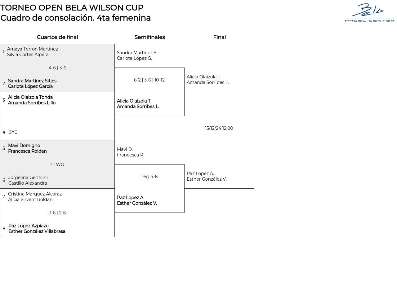 4ta femenina . Desde 09/12/2024 17:00 hasta 15/12/2024 14:00