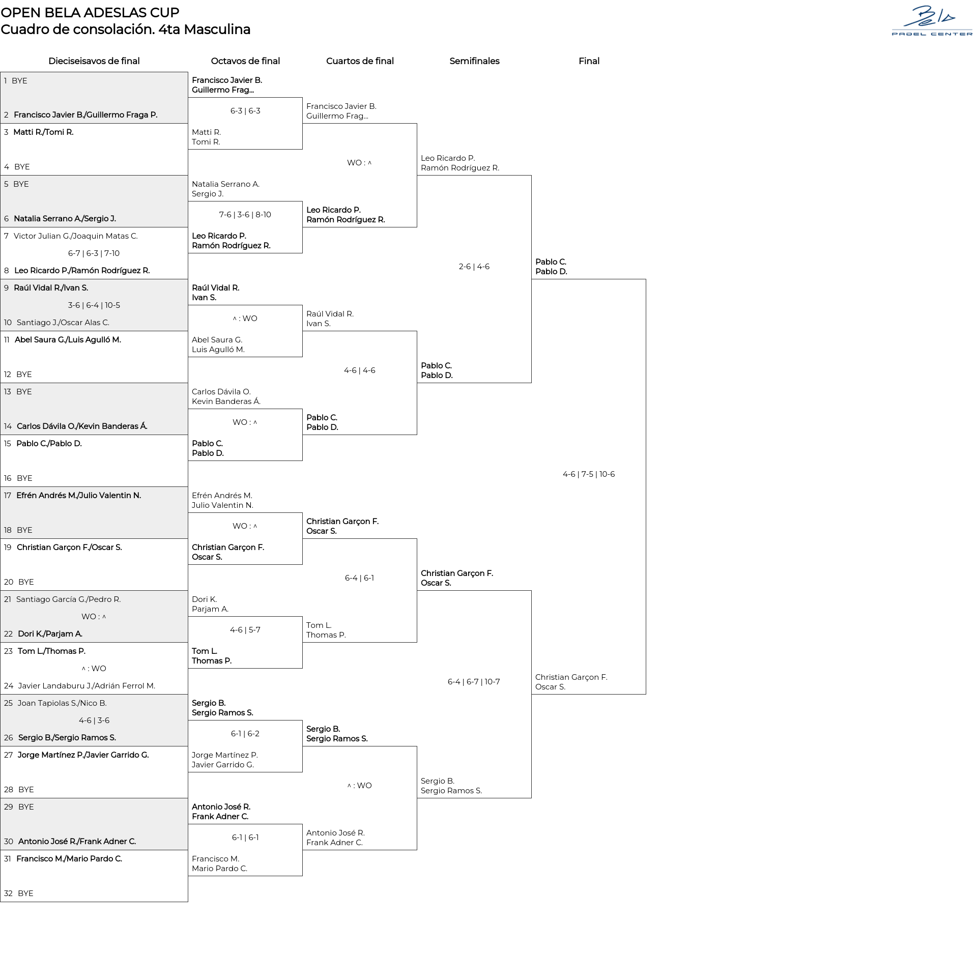 Cuadro principal 4ta Masculina
