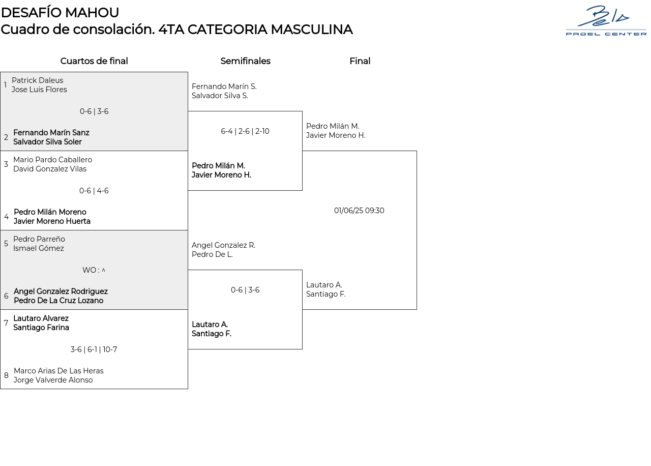 Cuadro de consolación 4TA CATEGORIA MASCULINA