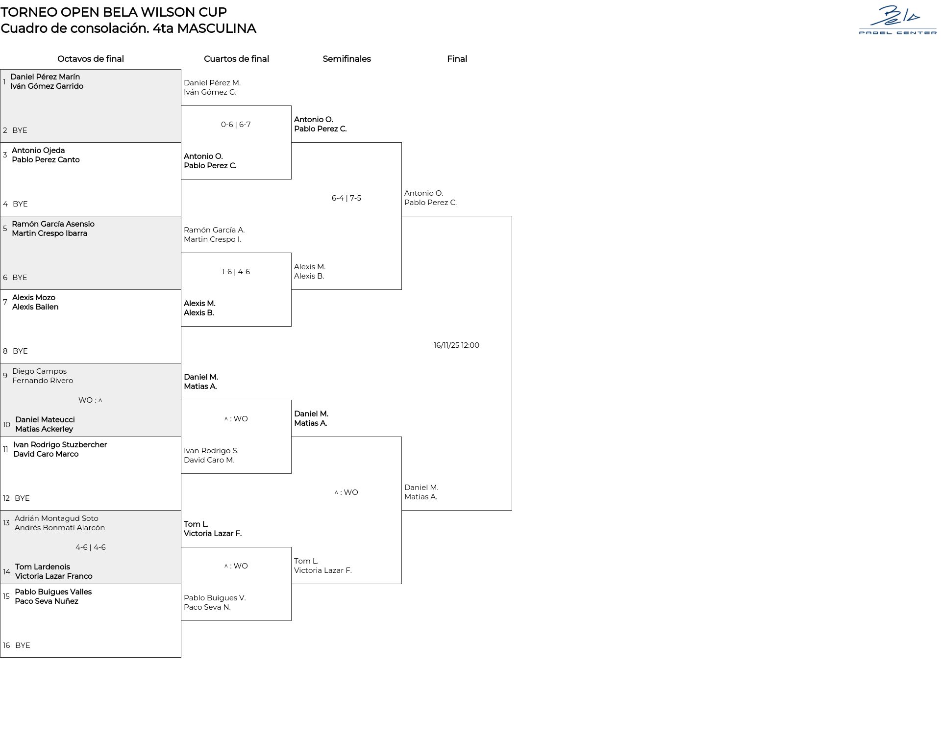 4ta MASCULINA . Desde 10/11/2025 18:00 hasta 16/11/2025 14:00